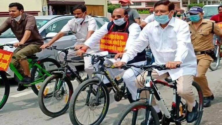 Uttarakhand Congress chief takes out cycle rally to protest against rising fuel prices
