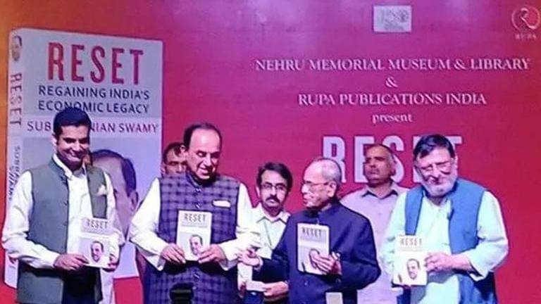 Former President Pranab Mukherjee on Wednesday released a book on written by BJP MP Subramanian Swamy named 'Reset: Regaining India's Economic Legacy'.