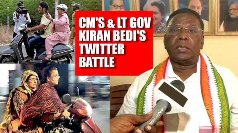 On Sunday, Puducherry's Lt Governor Kiran Bedi posted on Twitter a picture from a daily showing the CM riding a two-wheeler without a helmet. She called it a 'brazen violation' of the Motor Vehicles Act and said that DGP Puducherry Balaji Srivastava issued directions for legal action. The CM replied with photos (without location or date) of Bedi riding pillion on two-wheeler where either she or the driver were not wearing a helmet and tweeted, 'Practice what you preach...'