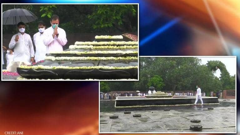 Amid the rainfall, Gandhi reached Veer Bhumi to pay respects to his father. Party leaders and Indian Youth Congress activists present there raised slogans hailing the former prime minister.