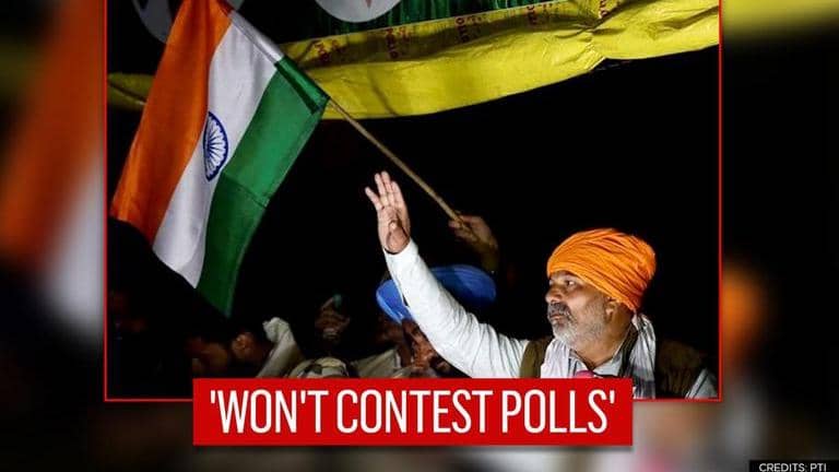 As politicians continue to meet farmers camped at Delhi's borders, BKU leader Rakesh Tikait on Sunday, said that he will not contest polls. He also told political parties to not come to the protest sites seeking votes as it was not their protest. Claiming that the government was trying to mislead the farmers, Tikait said that farmers are ready to hold talks with the Centre.