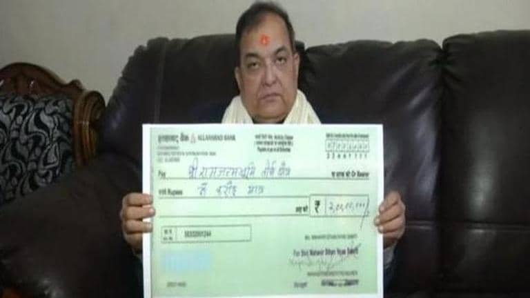 "I am going to Ayodhya with a cheque of Rs 2 crore as a donation from Mahavir temple in Patna to the proposed Ram temple. We will donate a total Rs 10 crore for it in installments," said Kishor Kunal, Secretary of Mahavir Mandir Trust, while speaking to ANI.