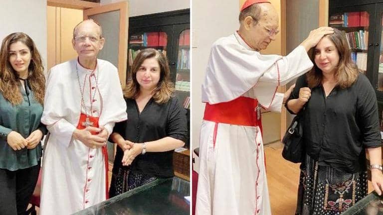 Taking to Twitter on Monday, Farah shared a photograph where she and Raveena are posing with Cardinal Oswald Gracias.