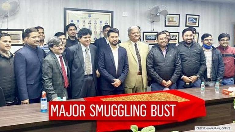 MoS Finance and Corporate Affairs Anurag Thakur visited the office of DRI, Delhi Zonal Unit and congratulated the officers for confiscating the 55.61 kg gold from the smugglers.