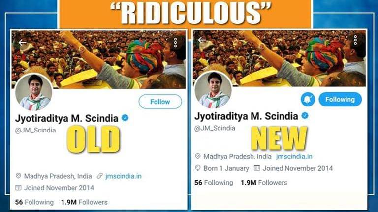 "Ridiculous Commotion" forces Scindia to explain removing Congress mentions in Twitter bio