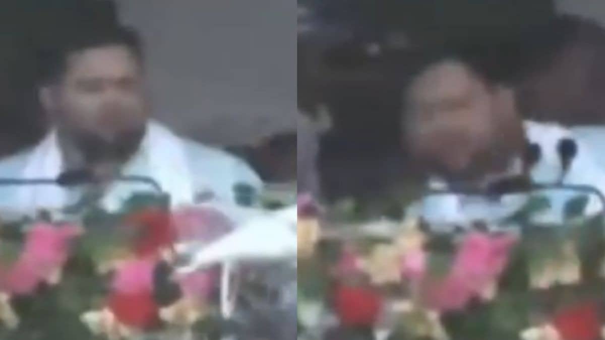 Caught by surprise, Tejashwi quickly bent down to avoid getting hit by the drone. A short video clip from the event shows him reacting quickly as the drone hit the podium and disrupted his speech for a few seconds. However, after briefly pausing and checking his surroundings, he resumed his speech and continued addressing the audience.