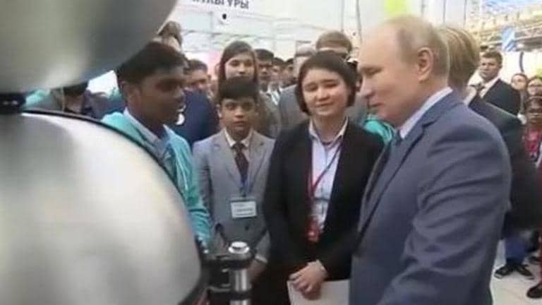 “We would really like it if more kids like you from India (can come and participate). It would be great,” his translator says. Putin is also seen addressing other children at the program and encouraging their projects.