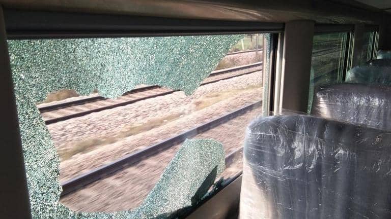 Photo shows that the window of the train was broken. The extent of damage is yet to be ascertained.