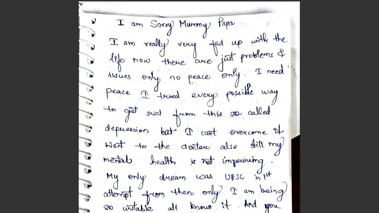 Apologising to her parents, the aspirant has spoken about how she is taking this step because she is unable to improve her mental health and she needs peace.