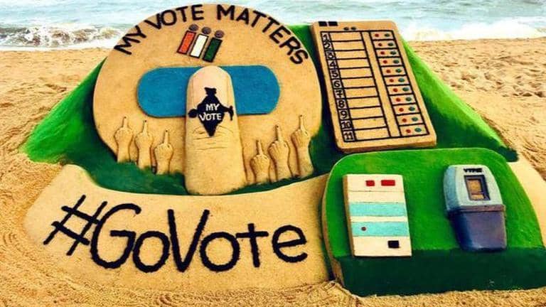 Sand artist Sudarsan Pattnaik on Monday urged the people to vote, spreading 'voter awareness' through his sand art at Puri beach in Odisha.