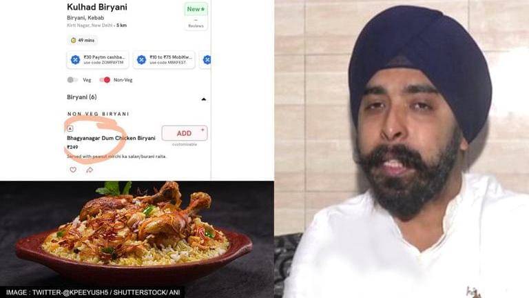 The iconic Hyderabadi chicken biryani was renamed 'Bhagyanagar Dum Chicken Biryani' in Tajinder Bagga's cloud kitchen named 'Kulhad Biryani'.