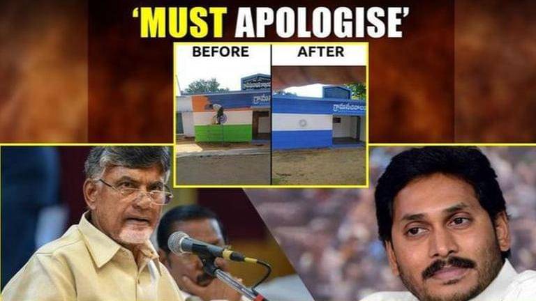 Telegu Desam Party (TDP) chief N Chandrababu Naidu on Wednesday took a jibe at the YSRCP government for replacing the national flag tricolor pattern on a government building with YSRCP colours. Naidu took to Twitter and stated that the CM YS Jagan Mohan Reddy-led government should apologise for this shocking and abominable act of replacing tricolor.