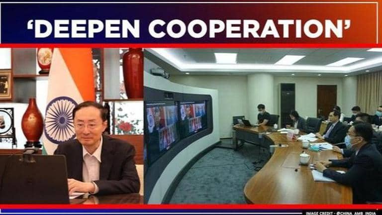 Pleased to join video conference today b/t Mr. Wu Jianghao, DG of Asian Dept of MFA & Mr. Srivastava, JS of EA Division of MEA. They exchanged views on bilateral ties, anti #COVID19 cooperation, celebrations for 70th anniv. of diplomatic ties & multilateral cooperation. (1/3) pic.twitter.com/qG2h3niOvZ