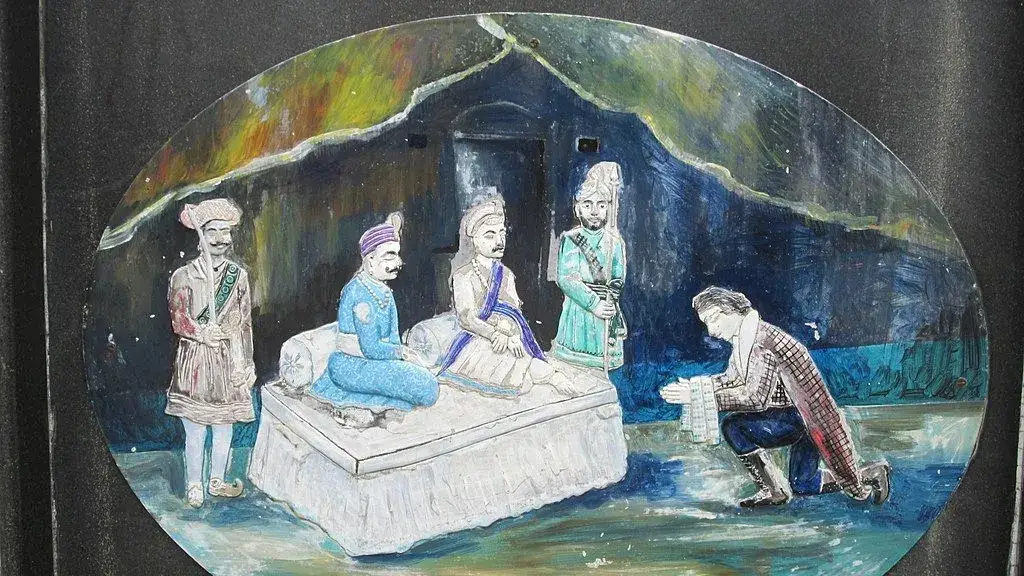 A mural depicting the British surrender during the First Anglo-Maratha War in front of Mahadji Scindia