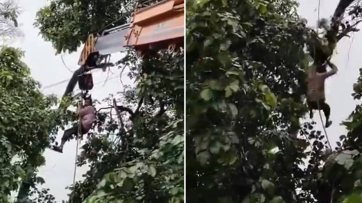 In the video that has surfaced online of the incident, Manoj, the electrician, is seen suspended from a crane while cutting branches that were in contact with the electrical wires he was fixing. The crane's hook broke, causing him to fall approximately 40 feet.