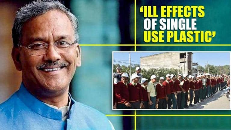 Uttarakhand Chief Minister Trivendra Singh took part in a human chain to create awareness among the people about the ill effects of single-use plastic