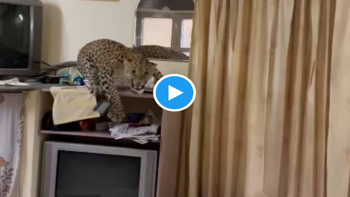 New Delhi: The menace of leopards encroaching into human spaces continues to persist. In a fresh incident, a leopard strayed into the staff room of a heritage hotel in Jaipur. Fortunately, no one was present in the room when the leopard entered it. A spokesperson of the hotel said the wild animal entered the staff room in the morning.