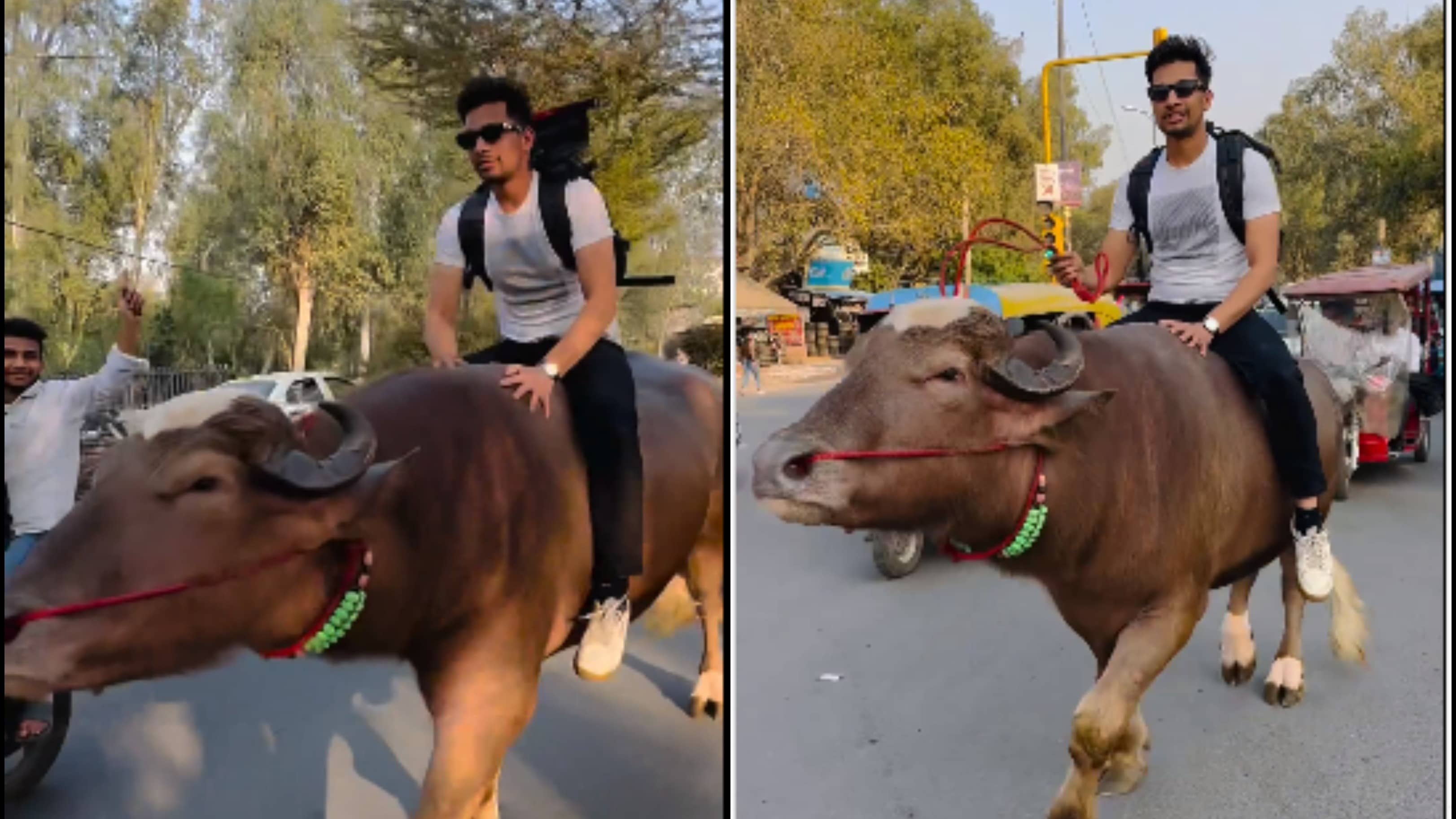 Instagram user bull_rider_077 seen riding a bull on the streets of Haryana, gained more than 4 crore views on the viral Instagram reel.