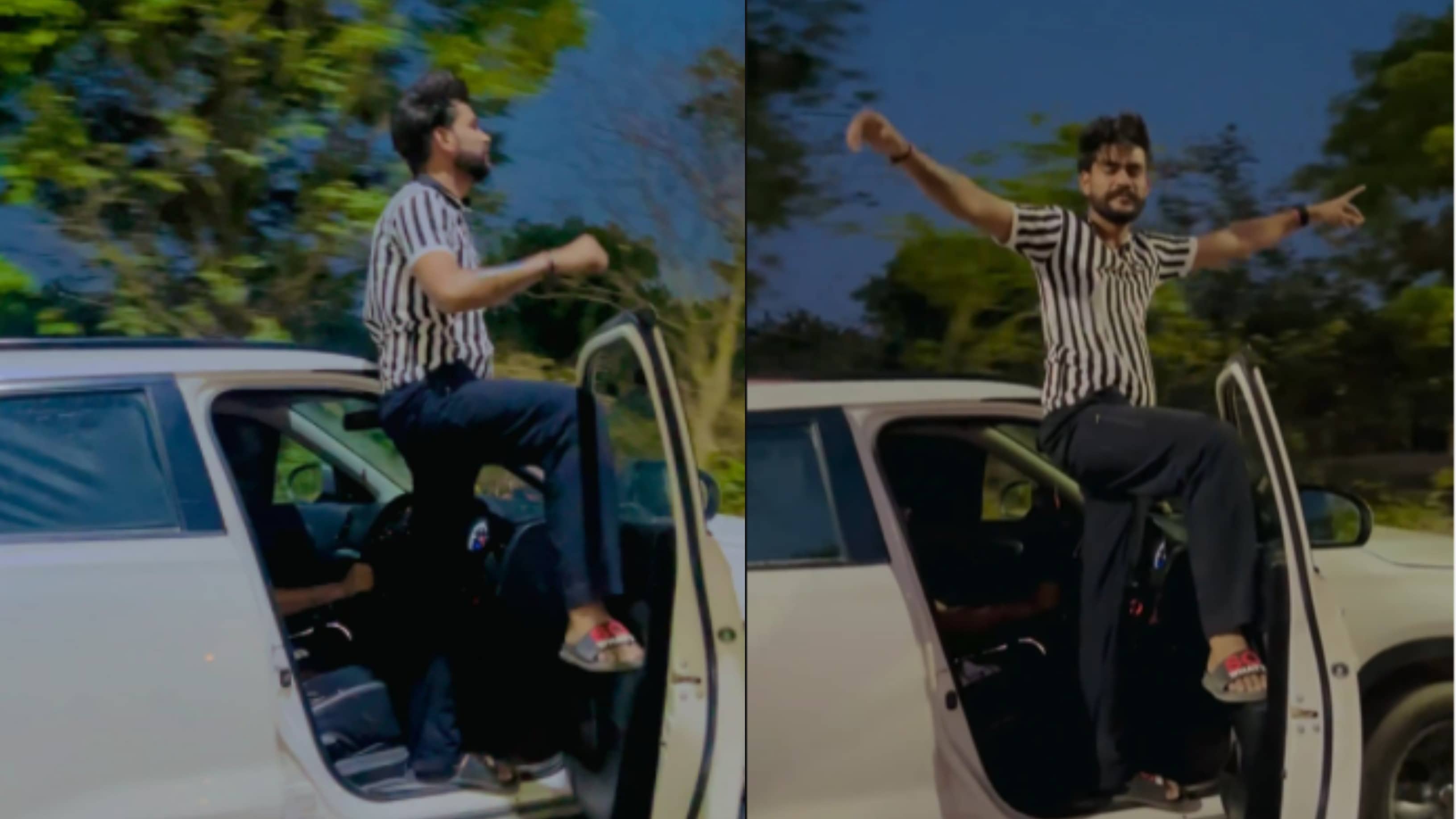 The man shown is the viral video is Sagar Gurjar who performs wild car stunts, making Instagram reels to gain popularity.