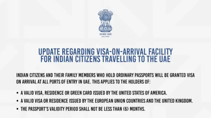 This policy was announced by the UAE’s Federal Authority for Identity, Citizenship, Customs, and Ports Security (ICP) on Thursday, October 17. It applies to Indian passport holders with regular (ordinary) passports and aims to simplify travel between India and the UAE. Previously, only Indian citizens who held residence permits from these countries could get a visa-on-arrival.