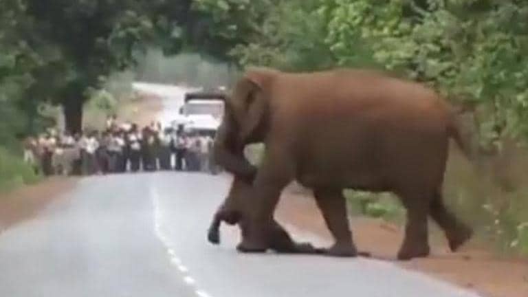 A video posted by the Indian Forest Service officer Parveen Kaswan on Twitter showed an elephant emerging from the forest, carrying her dead calf while spectators can be seen watching the video from a distance.