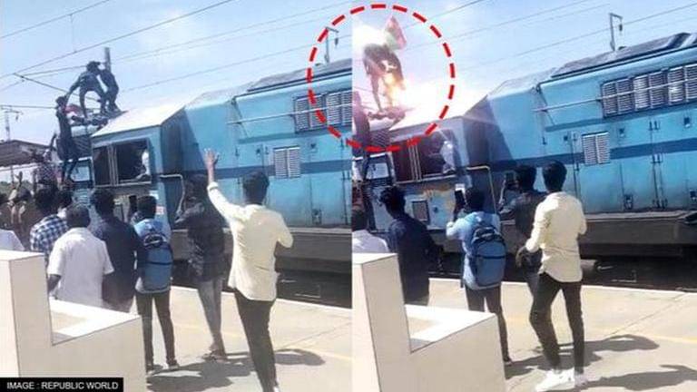 Youth in Tamil Nadu climbs atop train to wave flag; gets electrocuted