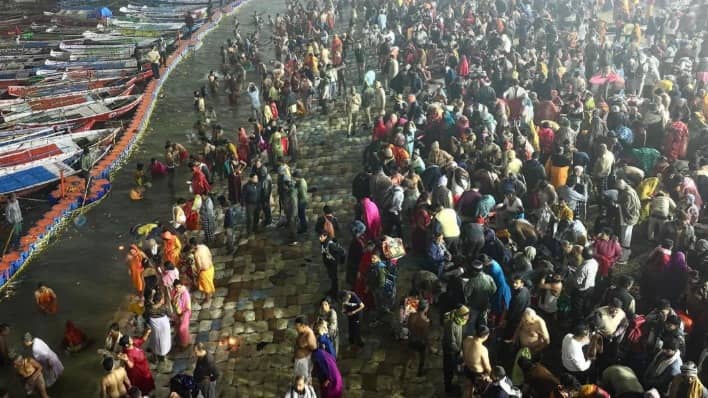 The most favorable times for the holy dip are during the Brahma Muhurta (from 05:09 am to 06:59 am), evening time (from 6:16 pm to 6:42 pm), and Nishita Muhurta (from 12:09 am to 12:59 am).