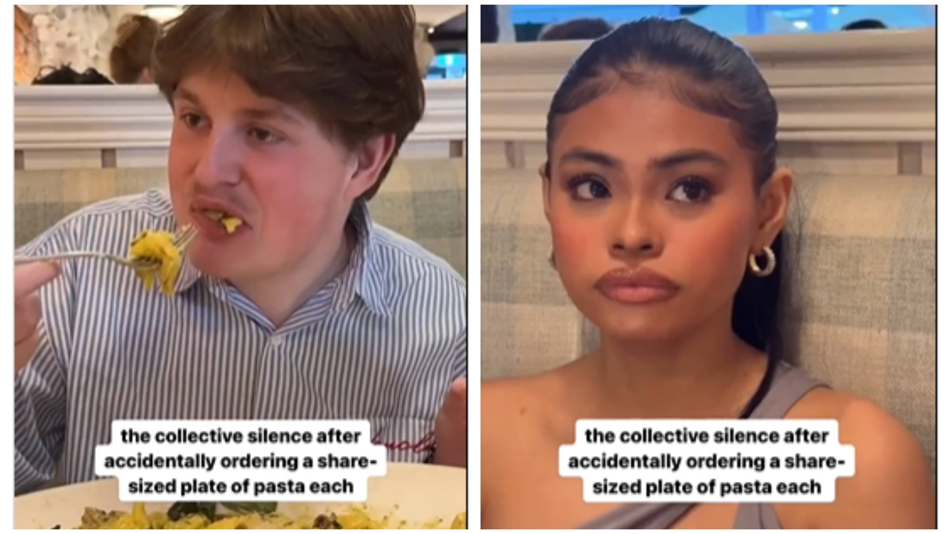 Aussie vlogger's viral video features friends accidentally ordering massive pasta plates, amusingly tackling portion size and unexpected bill shock.