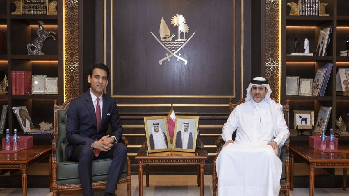 In a move to bolster international financial partnerships, Sagar Adani, Executive Director of Adani Green Energy Limited (AGEL), met with Sheikh Bandar bin Mohammed bin Saoud Al-Thani in Doha on Sunday. Sheikh Bandar, who serves as both the Governor of the Qatar Central Bank and the Chairman of the Qatar Investment Authority (QIA), held discussions with Adani. It was focused on the shifting dynamics of global financial markets and emerging investment landscapes. The meeting underscores the Adani Group’s aggressive strategy to engage with global sovereign wealth funds as it scales its renewable energy operations.