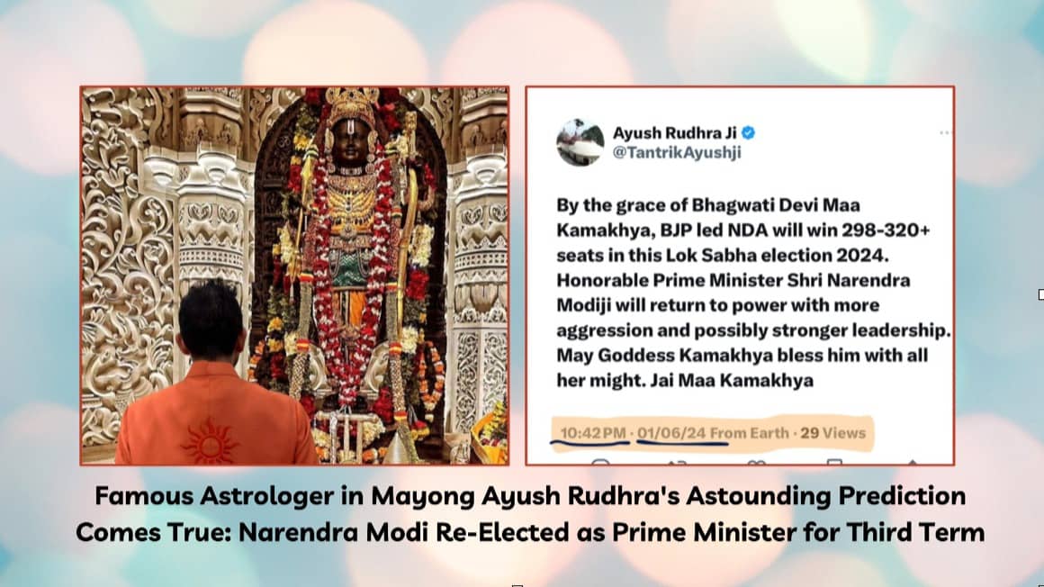 In the heated and highly competitive environment of the 2024 Lok Sabha elections, Famous astrologer in Mayong Ayush Rudhra's prediction that Narendra Modi would be re-elected for a third term stood out. Months before the elections, Rudhra had confidently forecasted Modi's victory, attributing it to favorable astrological alignments and cosmic energies. This prediction was met with both skepticism and intrigue, given the complex and unpredictable nature of Indian politics.