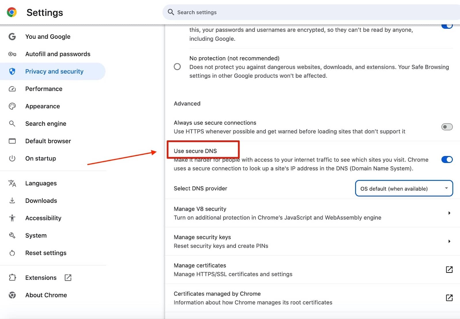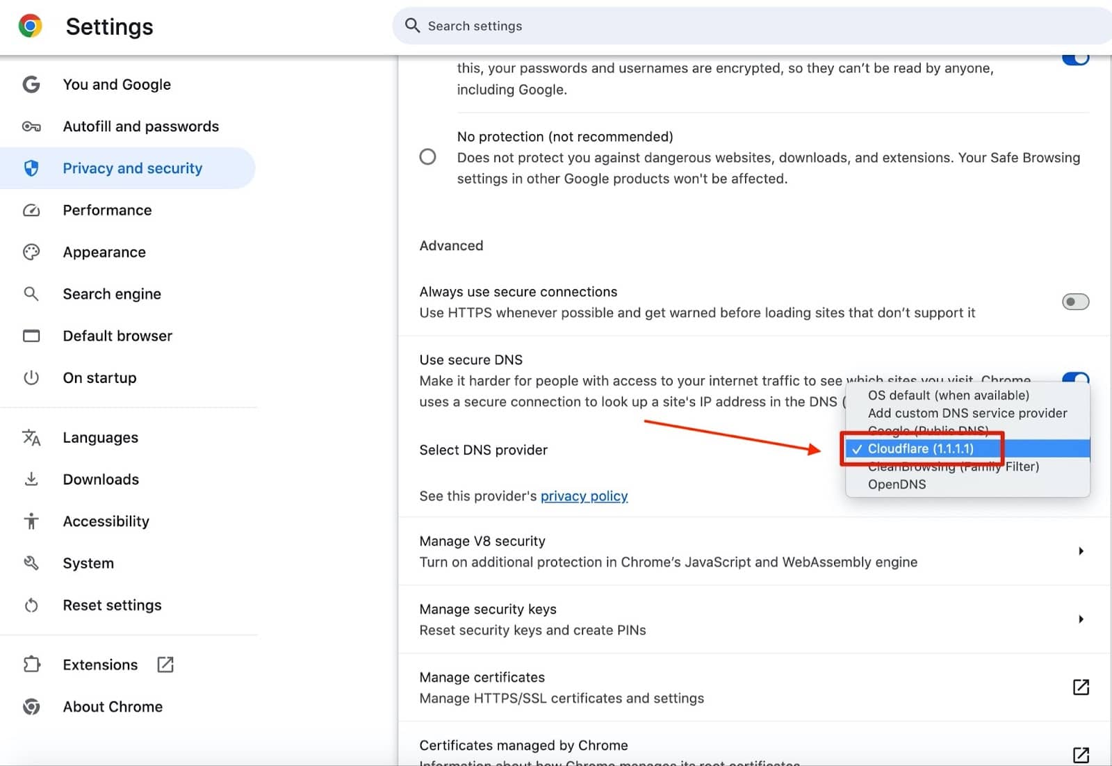 - Chrome now uses Cloudflare's encrypted DNS (1.1.1.1).