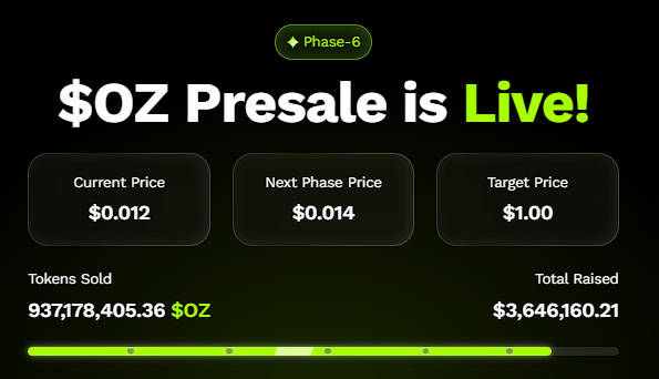 Ozak AI’s $0.012 presale has raised over $3.6M, selling nearly 930M tokens amid surging investor interest. Analysts now expect its price to surpass conservative 2026 targets of $0.25–$0.40. Accelerated momentum could push OZ toward $0.50 much sooner than forecasted