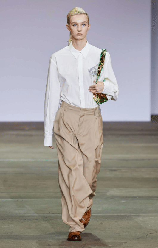 Androgynous dressing finds a place of prominence with this trend and while the focus is on neutrals, a bold red lip still makes for an agreeable crossover.