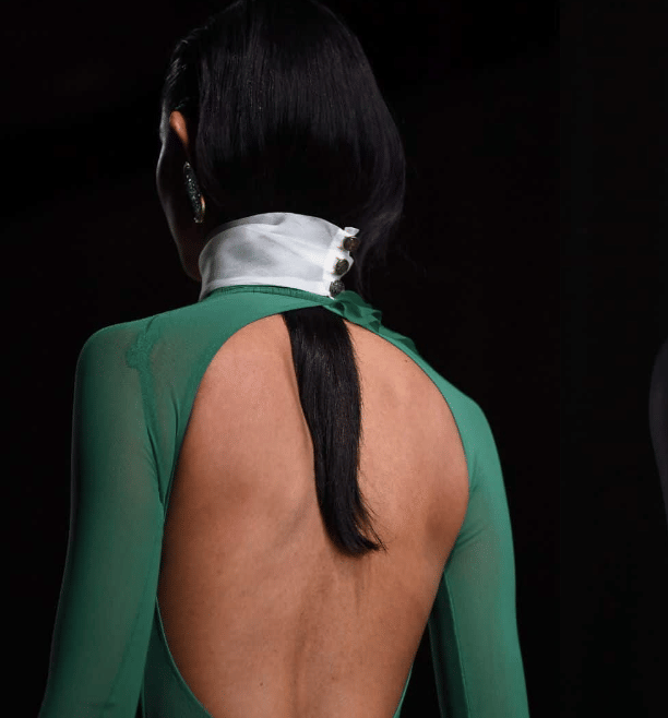 No matter if you are sporting a tightly bound high ponytail, or a lose, low hanging alternative - if your ensemble of the day features a high-neckline, simply tuck it under and pull it out. It must be noted that this trend works best with looks which feature a low-rise back - or conversely, no back at all.