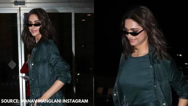 Deepika Padukone was spotted leaving for London to join her husband Ranveer Singh for a vacation. Deepika Padukone was dressed in a teal coloured t-shirt with a pair of similar coloured satin trousers. She completed the look with a teal coloured Lacoste jacket and a pair of trouser socks. She also wore dark coloured pumps and accessorised the look with a pair of skinny black sunglasses. Netizens have complimented the actor’s fashion sense and called the look Gen-Z appropriate.