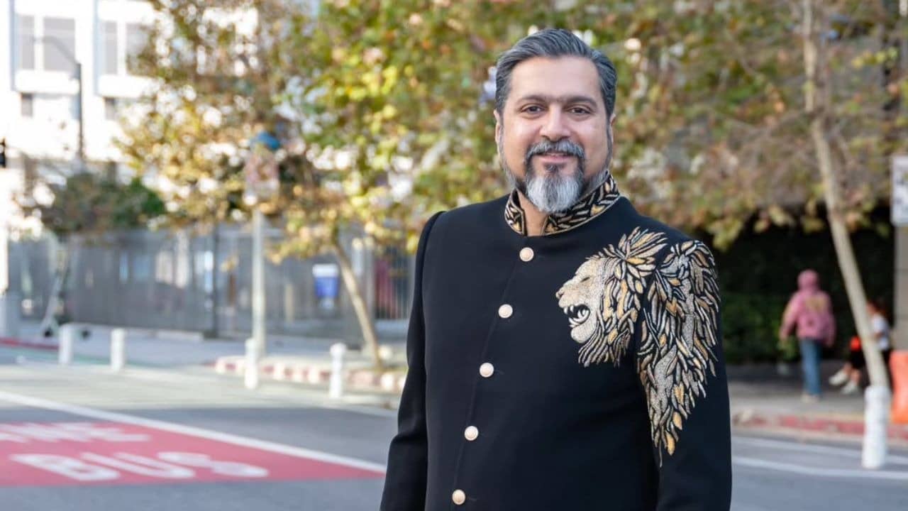 Three-time Grammy winner Ricky Kej chose to represent culture and sustainability by wearing a meticulously crafted black achkan adorned with an intricately hand-embroidered Asiatic lion motif at the 2026 Grammy Awards.