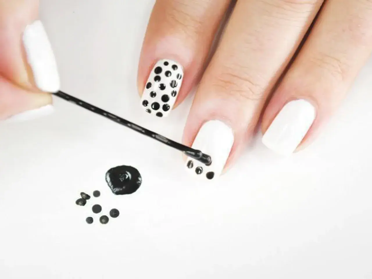 Use a bobby pin for polka dots: For perfectly round polka dots, dip the rounded end of a bobby pin into nail polish and carefully stamp it onto your nails.