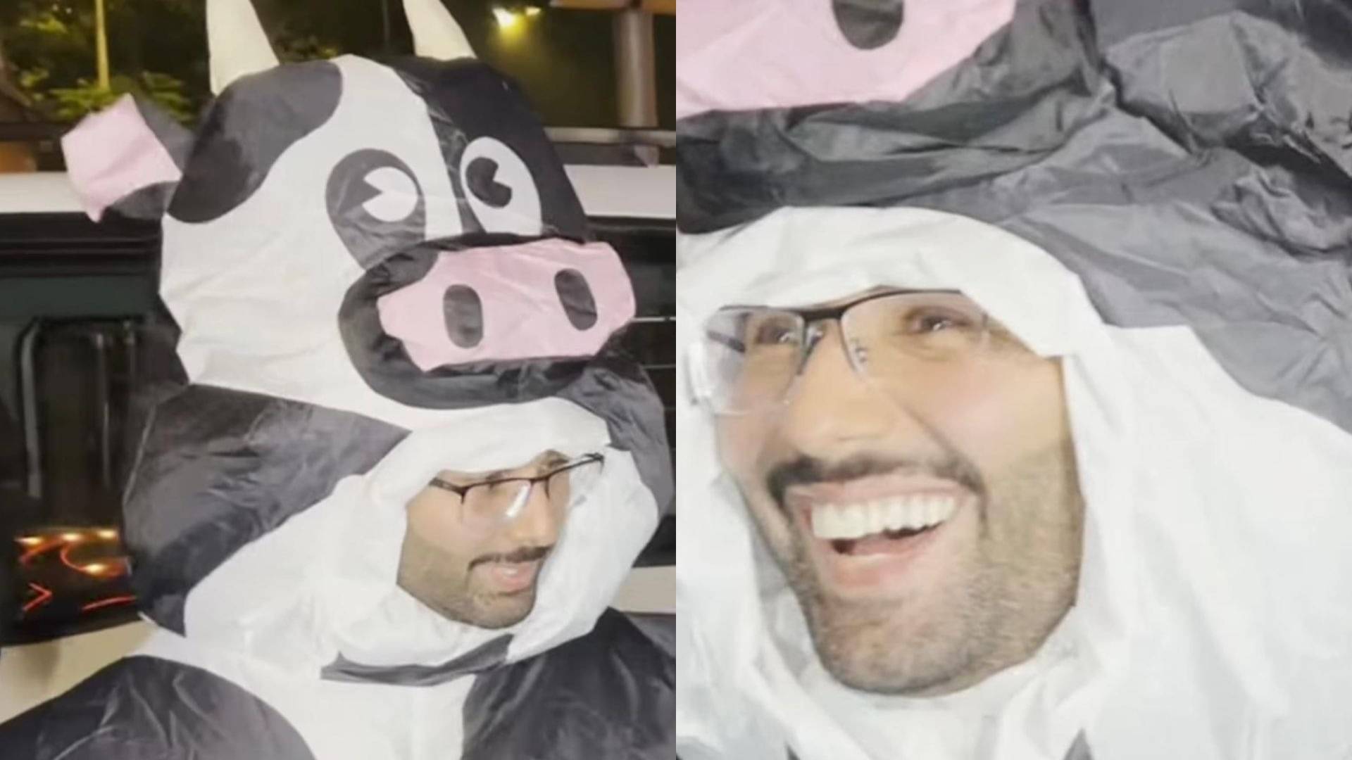 Orrhan Awatramani aka Orry was spotted on October 24 outside Bastain, Mumbai in a hysterical cow costume for a Halloween bash.