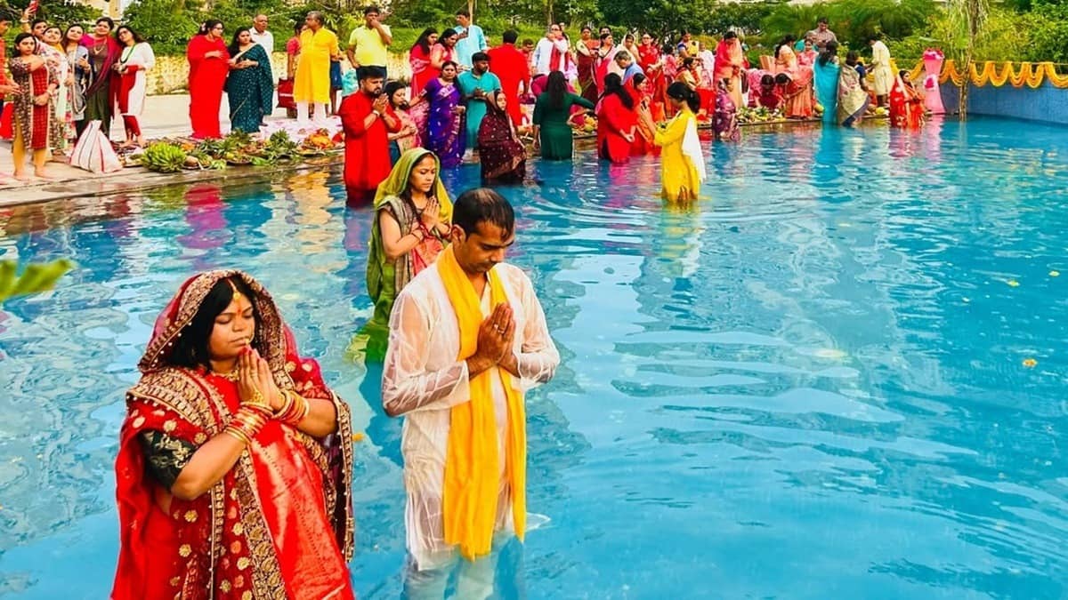 The rituals of Chhath puja are traditionally performed at the ghats (banks) of rivers and ponds. However, many people don't have access to rivers, ponds, or any other water bodies.