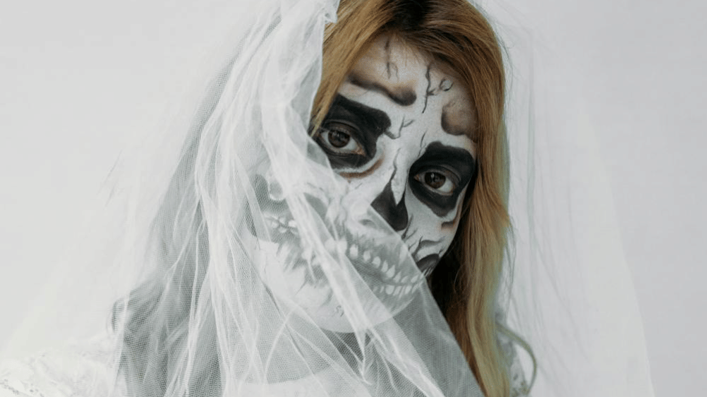 For an eternally creepy yet timeless look, the Ghost Bride never fails to spook. Don a flowing white gown, add a lace veil, and carry a bouquet of wilted flowers. Pale makeup with dark, hollow eyes will give you that ethereal, tragic beauty. To amp up the scare factor, go for a ghostly glow with white or blue-tinted makeup. The contrast of the soft bridal look with the unsettling makeup creates the perfect haunting ensemble.