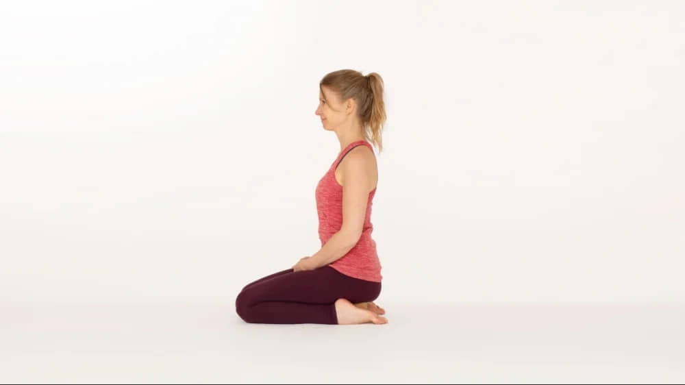 Kneel with your thighs perpendicular to the floor, sitting back between your feet. This pose gently stretches hip flexors and quadriceps. Gradually intensify the stretch by leaning back or adopting the reclining hero pose.