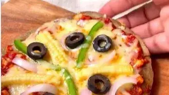 5. Pour some ghee on tawa. Place the pizza on the tawa and cover the same. Cook till the cheese melts.