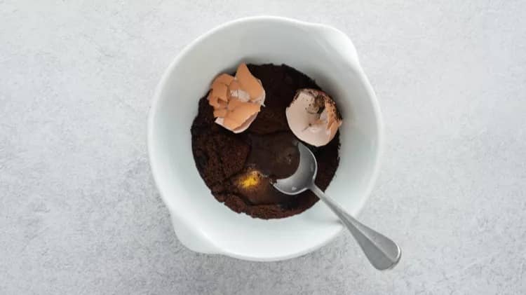 Step 3: While waiting for the water to boil, stir together 3/4 cup freshly ground coffee (medium to coarse grind), remaining 1/4 cup water, and 1 large egg in a small bowl or measuring cup. (You can omit the eggshell and use only the egg yolk and white if you prefer.)
