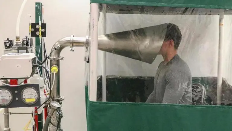 The cone sucks up everything that comes out of their mouths and noses. It's part of a device called “Gesundheit II” that is helping scientists study a big question: Just how does the virus that causes COVID-19 spread from one person to another?