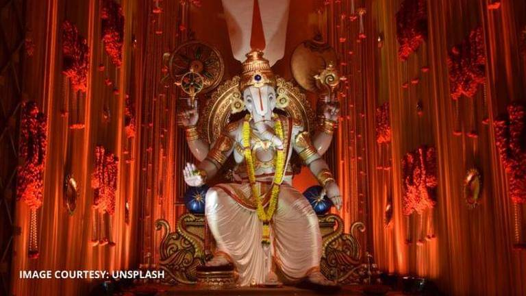 Another common, yet elegant style to adopt is the one studded with mirrors and glitter. All you have to do is decorate the mandap with proper glitter to make it look extremely classic and out-there. Golden combined with glitter will give you an over-the-top look which is exactly what goes well with a grand celebration like Ganesh Chaturthi. You can also choose your Ganesha idol keeping the theme in mind.