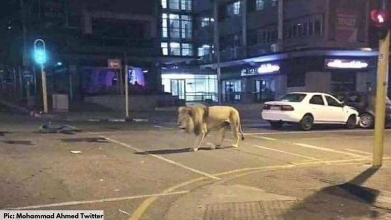 The pictures that were widely circulated on social media is of a lion in South Africa. The picture is from back in the year 2016 when the lion was seen strolling the streets in the middle of the night. The lion was borrowed from a nearby lion park for filming purposes.