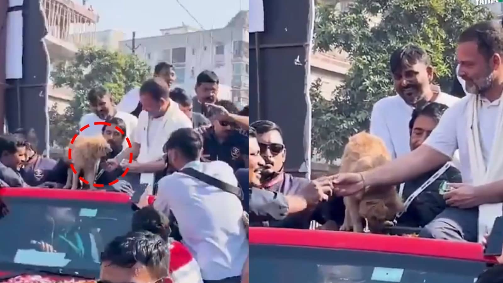 A video posted by the march's official platform shows Rahul Gandhi petting a shivering puppy and offering it a biscuit. When the dog hesitates, the Lok Sabha MP hands the biscuit to a nearby supporter, seemingly the owner, who feeds his dog.