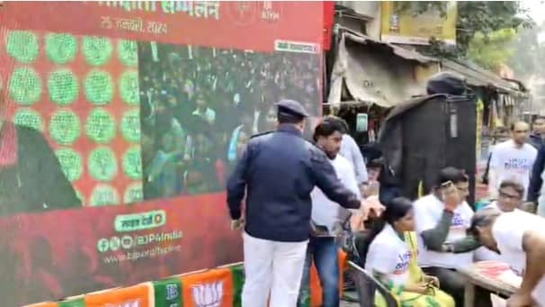 Kolkata: Prime Minister Narendra Modi on Thursday on the occasion of National Voters’ Day virtually addressed a massive gathering of first-time voters. The event, organised by Bharatiya Janata Yuva Morcha (BJYM), saw participation of lakhs of young voters in over 5,000 locations. However, a video that has surfaced on social media shows Kolkata Police halting the public screening of the address. BJP’s Amit Malviya alleged that West Bengal Police, allegedly on the instructions of Mamata Banerjee, stopped the screening of Prime Minister Modi’s address to first-time voters across Bengal, despite valid permissions.