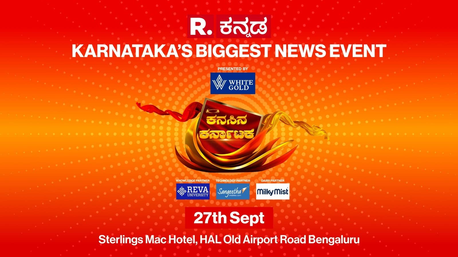 The event would not have been possible without our esteemed sponsors: “Kanasina Karnataka’ is Presented by White Gold. Reva University is onboard as Knowledge Partner, Technology Partner for the event is Sangeeta Mobiles, and Milky Mist - the Dairy Partner.