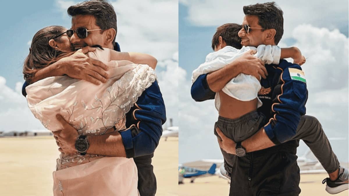 Among the most moving moments was the embrace between Shukla and his wife, Kamna, who clung to him in tears after weeks of separation. Their four-year-old son, who had been staying with Kamna in the U.S., rushed into his father’s arms in a reunion nearly two months in the making.